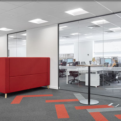 The design and colour scheme reflect the brand’s strong identity with the mission statement featuring prominently at reception and the brand’s logo displayed on the double-glazed Komfort partitioning used throughout.